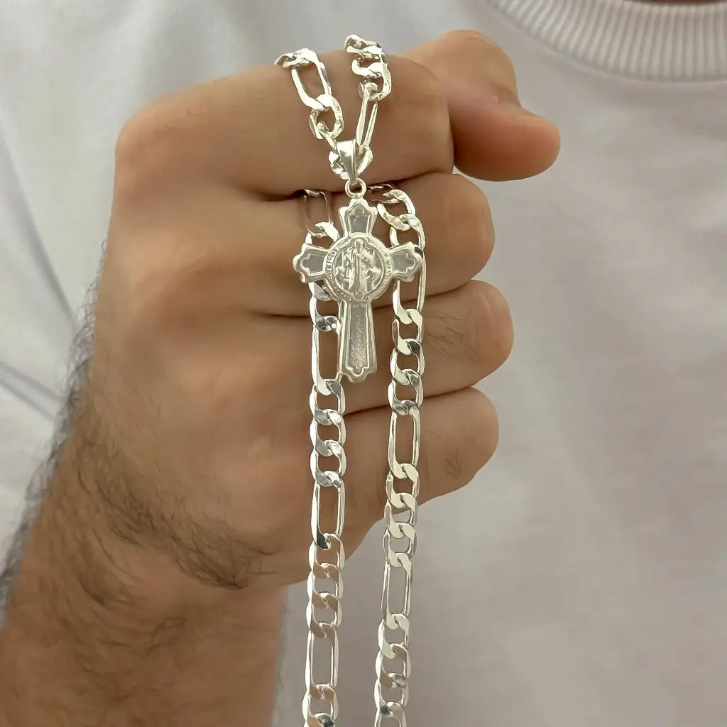 Descubre la perfecta combinación de elegancia y espiritualidad con nuestra Cadena Tejido Cartier de 60 cm acompañada de un Dije Cruz de San Benito en Plata 925. Un amuleto lleno de historia y significado que te ofrece protección divina mientras realzas tu estilo personal.