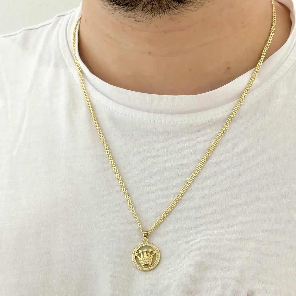 Cadena de Tejido Chino + Dije de Corona Rolex en Oro Laminado 18K