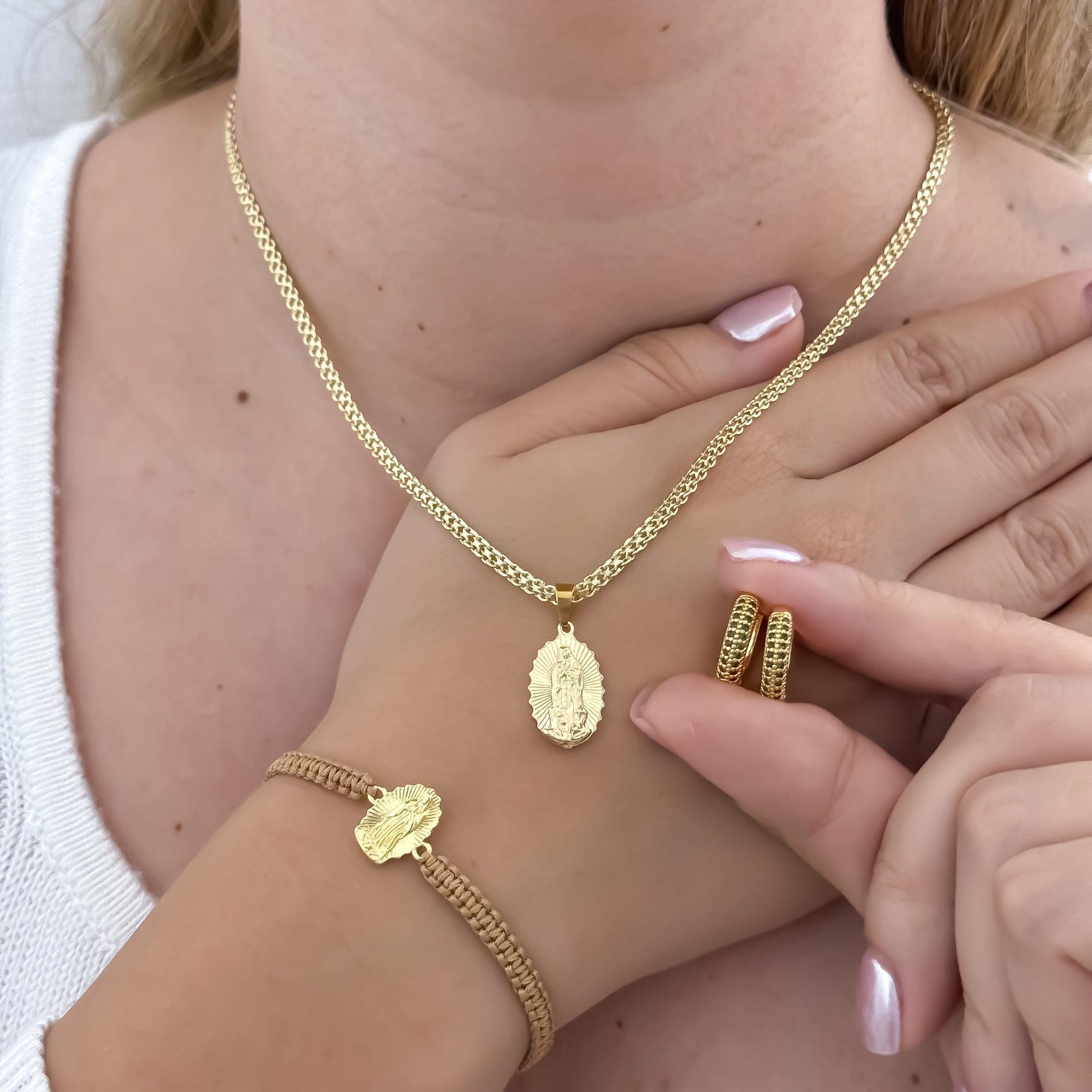 Este set es más que joyería, es una conexión con tu fe y un símbolo de protección. Lleva contigo la bendición de la Virgen de Guadalupe con el estilo y brillo que mereces.