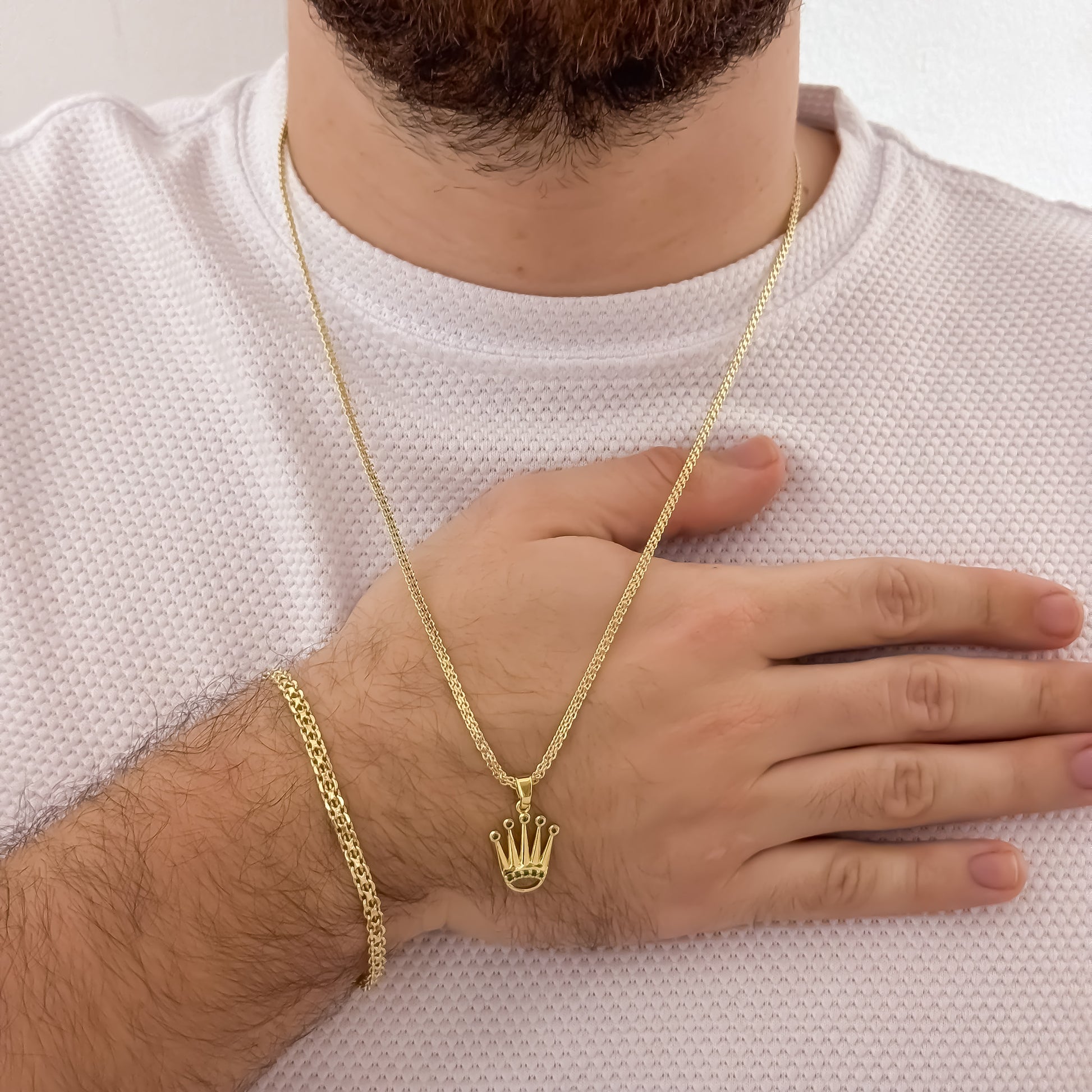 Conjunto Exclusivo Corona Rolex en Oro Laminado 18K – Cadena + Pulsera