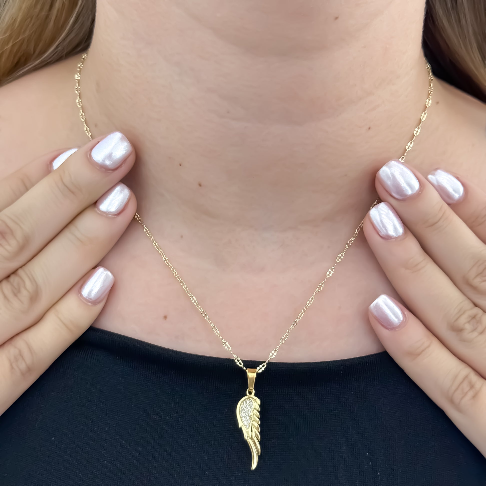 Descubre una pieza que va más allá de lo estético: una joya que refleja tu esencia, protege tu energía y realza tu elegancia natural. Esta cadena de 45 cm con tejido crispeta diamantado, acompañada de un delicado dije de ala, es mucho más que un accesorio.