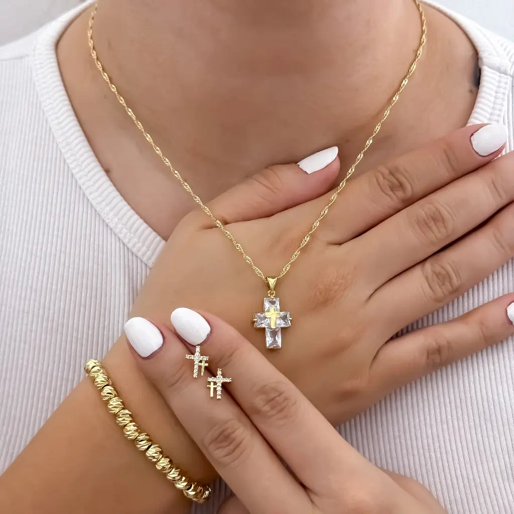 - ✔ Cadena Singapur + Cruz con Circones de Cristal