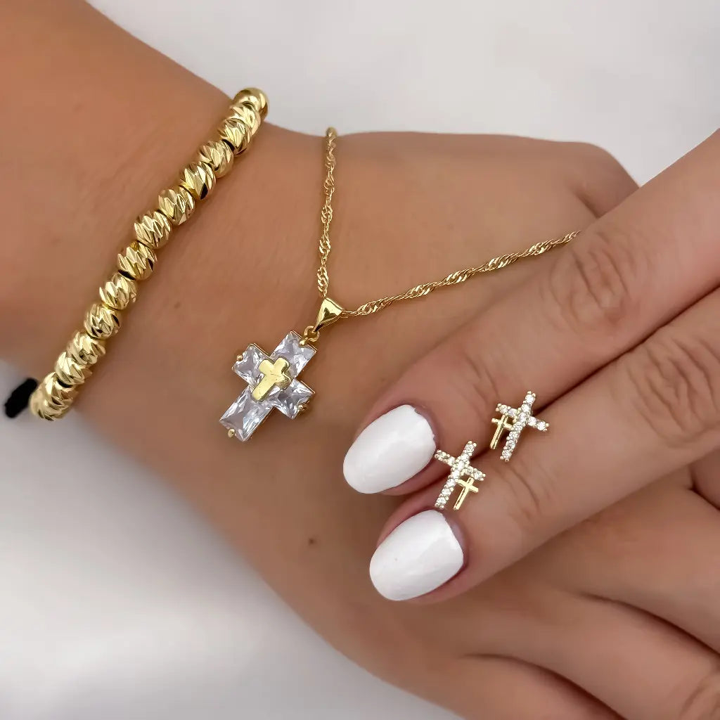 Un diseño fino y reluciente que aporta luz y distinción. La cruz simboliza protección y guía, ideal para acompañarte en todo momento. - ✔ Topos en Forma de Cruz con Circones